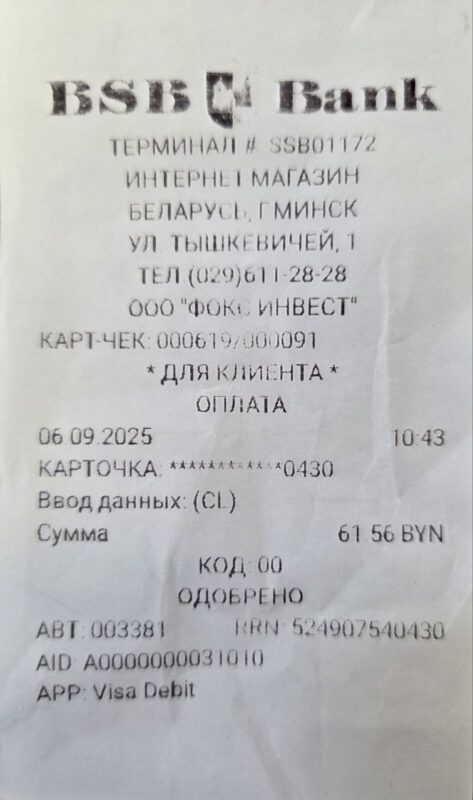 После нажатия кнопки «Купить» вы перейдете на специальную защищенную платежную страницу процессинговой системы bePaid. На платежной странице будет указан номер заказа и сумма платежа. Для оплаты вам необходимо ввести свои карточные данные и подтвердить платеж, нажав кнопку «Оплатить».